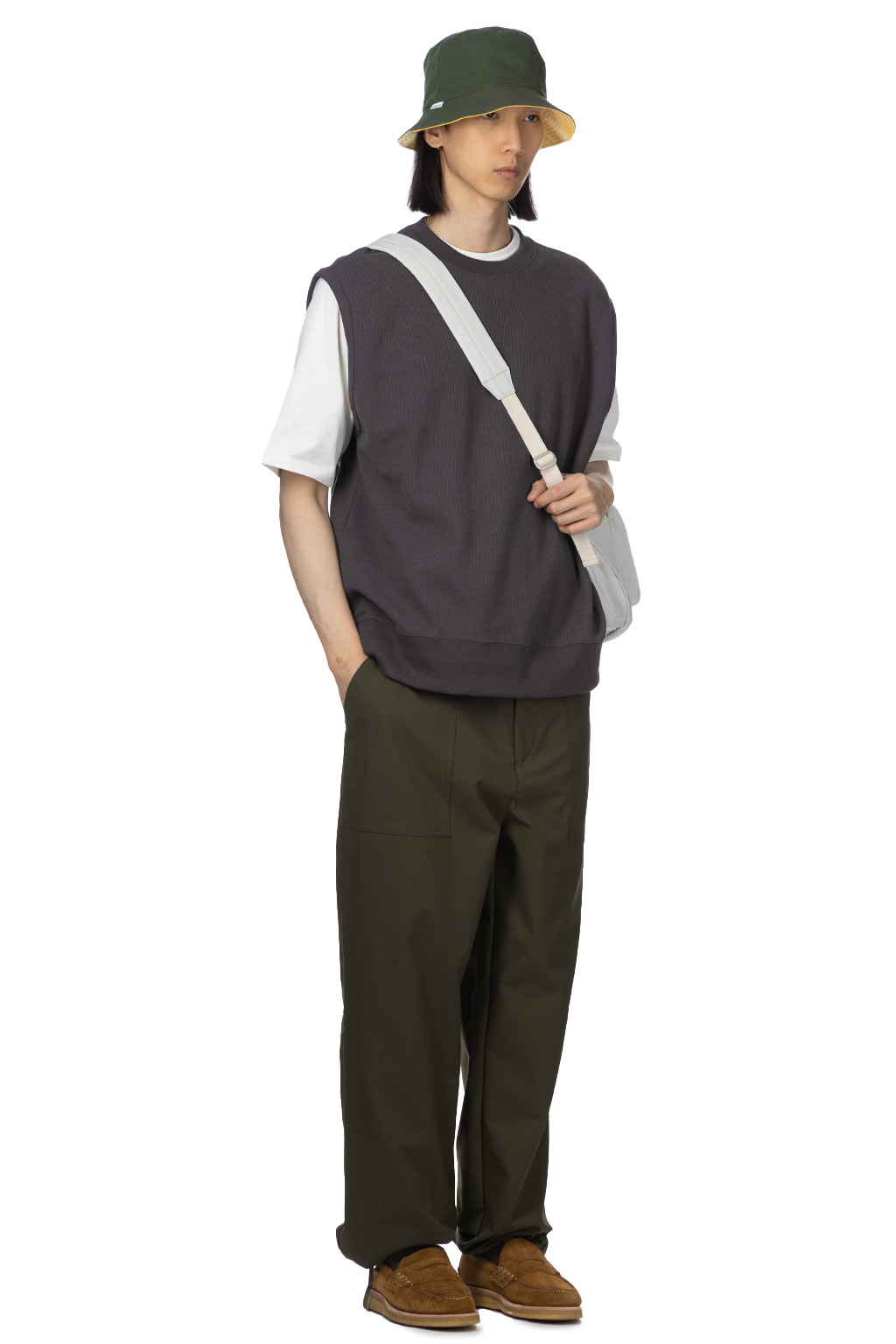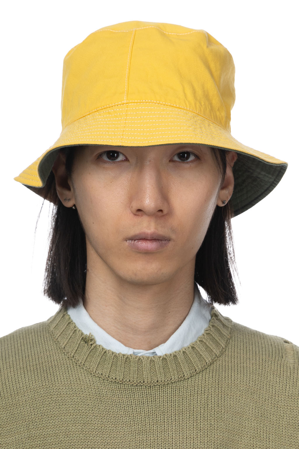 Loose Light Chino Bucket Hat Reversible - Olive / Lemon