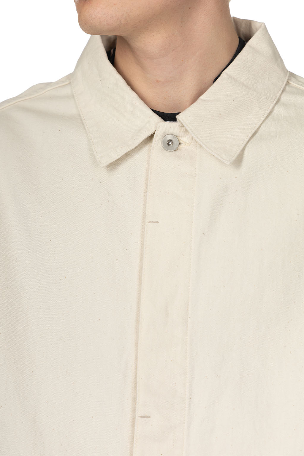 • The fly front flap covers up most of the buttons and only the top button appears when buttoned up
