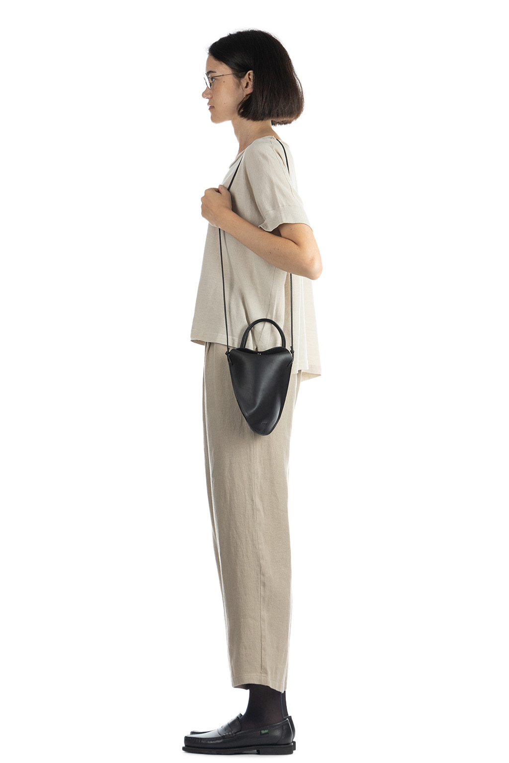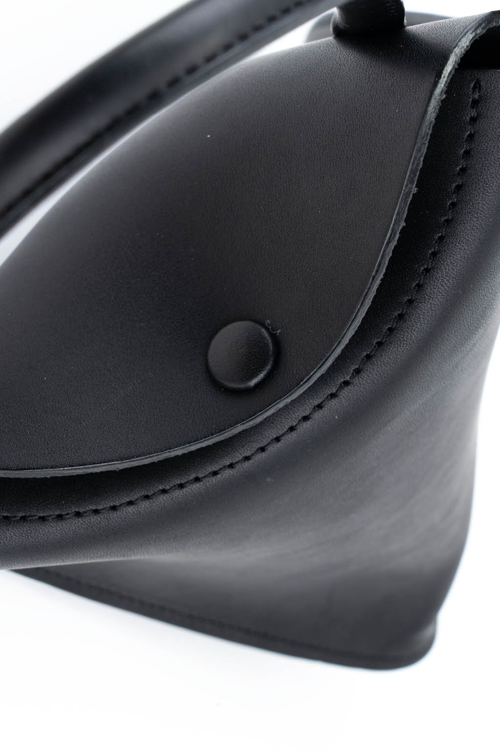 • In order to make the most of the individuality of the shape, the opening is opened and closed with a snap wrapped in leather, resulting in an extremely minimalist design with no unnecessary elements