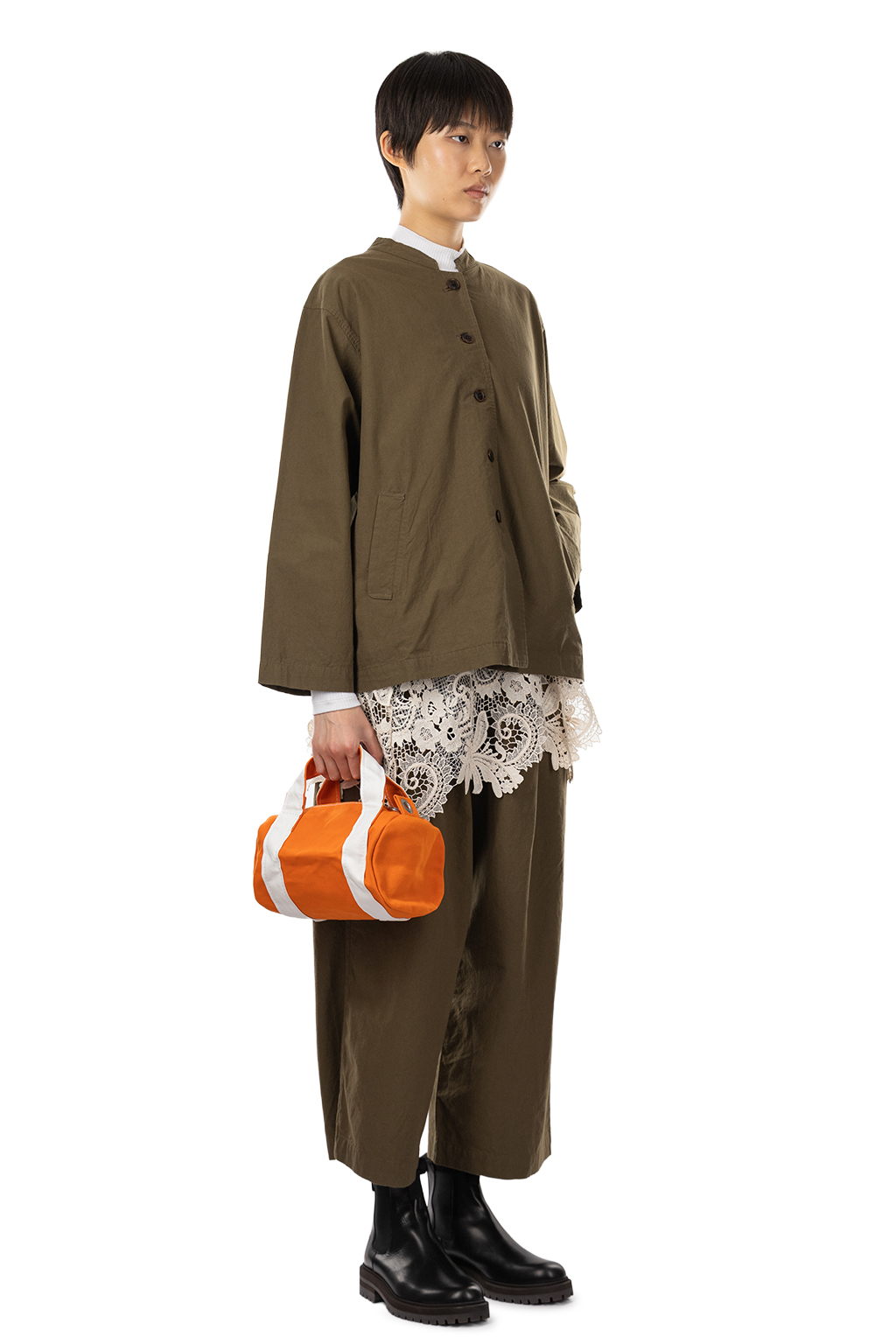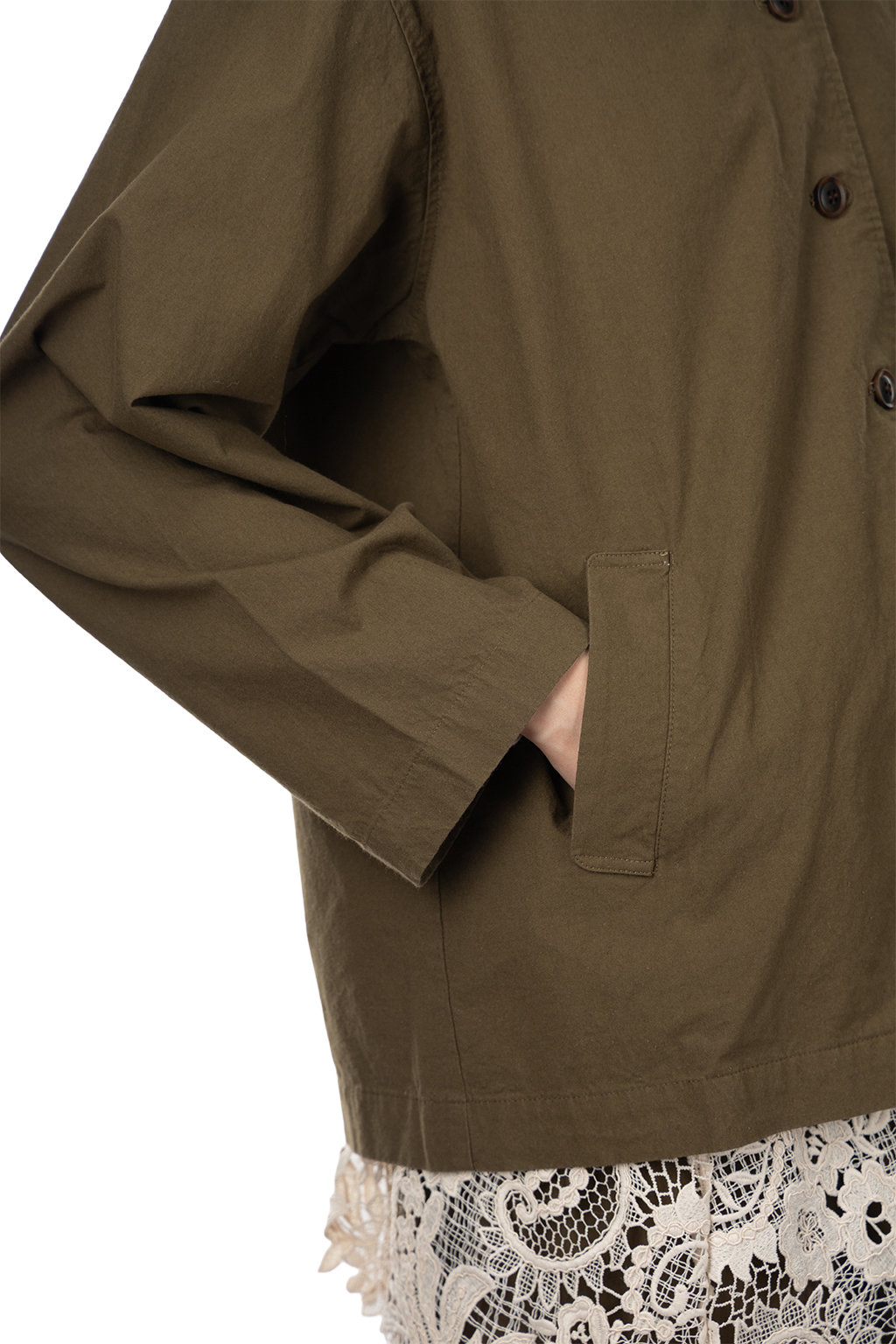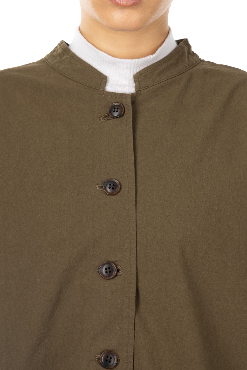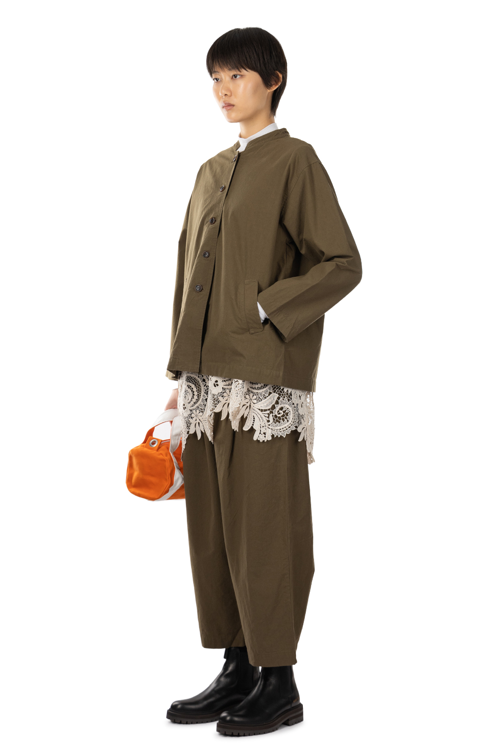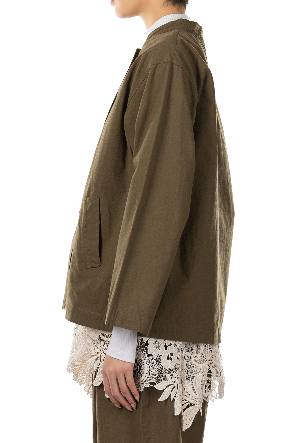 Cotton Horsecloth Mao Collar Jacket - Khaki